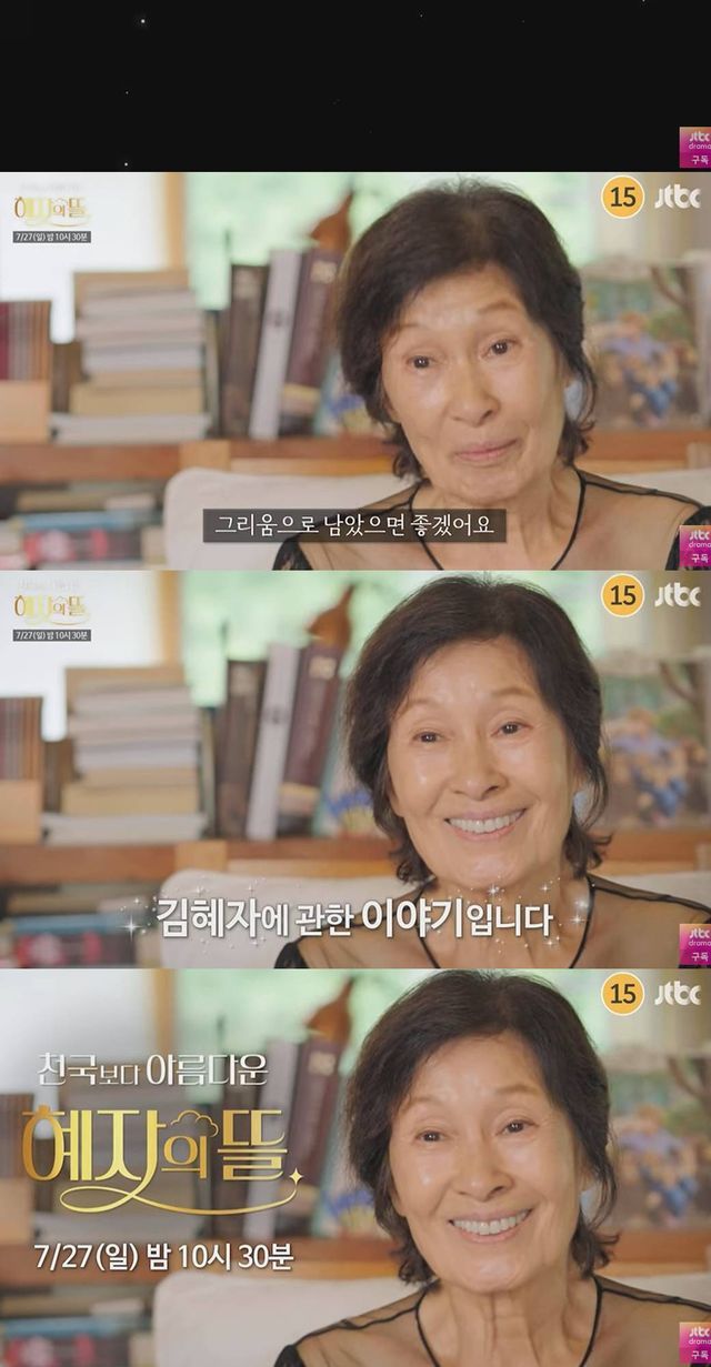 최근 공개된 예고편을 통해 김혜자는 "늙어가는 건 사실 슬프다. 어떻게 끝이 맺어질까. 내가 마지막에 어떤 모습일까. 그리움으로 남았으면 좋겠다"라고 전해 먹먹함을 더했다.