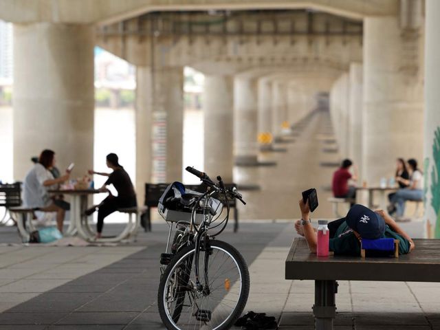 계속되는 무더위…그늘로 피신한 사람들. / 뉴스1
