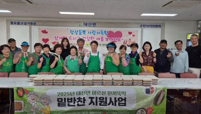 한편 대신면 지역사회보장협의체는 사회복지 공동모금회 지정기탁 배분사업비로 3월부터 대신면 새마을 부녀회와 적십자 봉사회와 함께 어르신 한끼뚝딱! 밑반찬 지원사업을 진행하고 있으며, 매주 50여명의 어려운 어르신에게 다양한 밑반찬을 만들어 전달하며 지역사회의 귀감이 되고 있다.