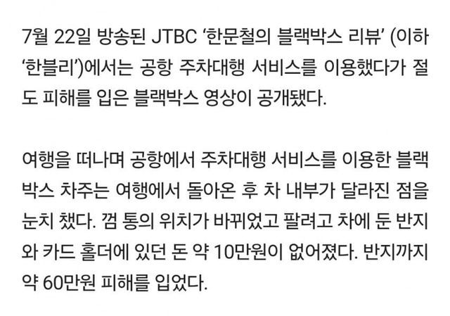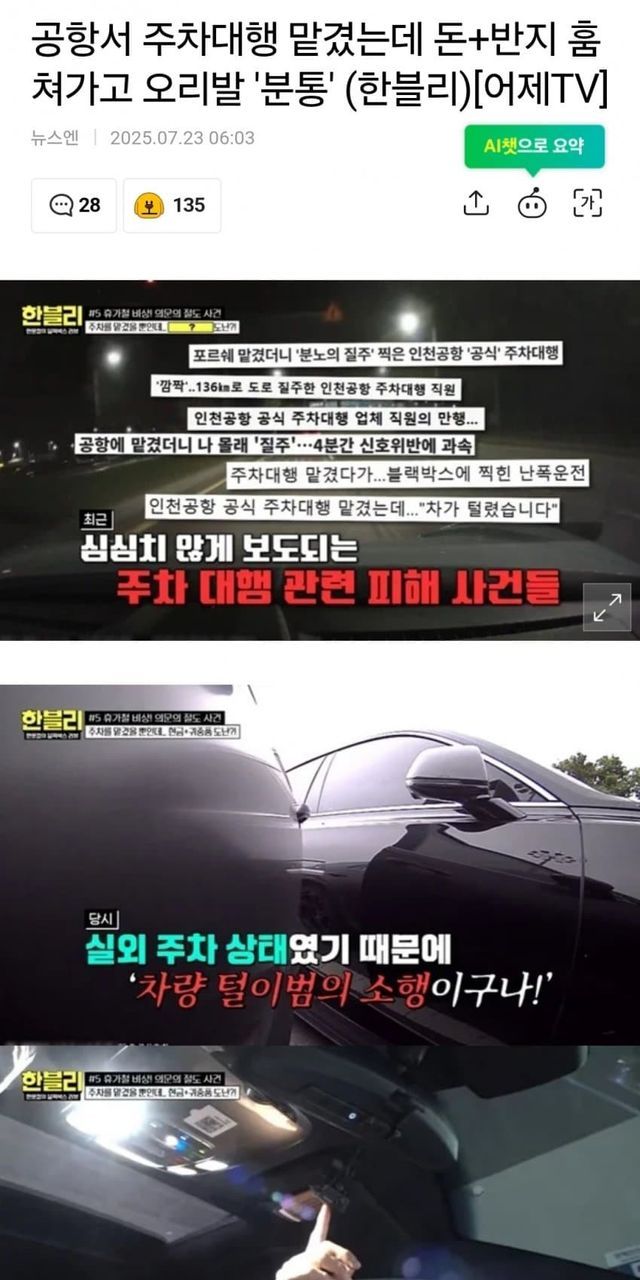 공항서 주차대행 맡겼는데 돈+반지 훔쳐가고 오리발 '분통'