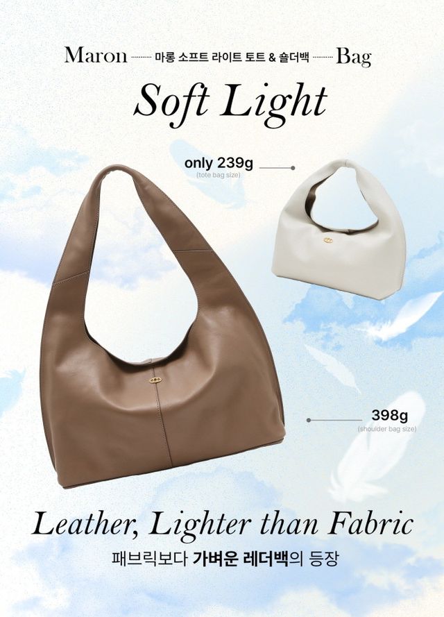 매 시즌 독창적인 디자인과 소재의 활용으로 탄탄한 팬덤을 형성한 아떼 바네사브루노 액세서리가 이번 시즌, 가볍고 편안한 착용감을 강점으로 하는 마롱 소프트백을 선보였다. 토트백 기준 239g, 숄더백 기준 398g으로, 천연 소가죽을 사용했음에도 패브릭 가방보다도 가벼운 무게감을 자랑한다. 평균적으로 동일한 크기의 일반 가죽 가방과 비교했을 때, 최소 1.5배에서 최대 3배까지 가볍고, 기존에 출시된 패브릭 가방보다도 약 2배 이상 경량화된 것이 특징이다.