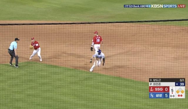 수비마저 불안했다. 0-3으로 뒤진 4회 말 2사 1루에선 김성윤의 우전 안타 때 치명적인 중계 플레이 실수가 실점으로 이어졌다. 우익수 최준우의 송구 실책을 틈타 1루 주자 박승규가 홈까지 파고든 것. 0-5로 끌려간 5회 말 1사 1·3루에선 최민준이 양도근을 헛스윙 삼진 처리했다. 이어 2루 도루를 시도한 전병우가 런다운에 걸렸다. 삼성은 전병우가 협살 상황에서 시간을 끌어주자, 3루 주자 이재현이 홈으로 쇄도했다. SSG 유격수 안상현의 뒤늦은 홈 송구의 결과는 '송구 실책'이었다.