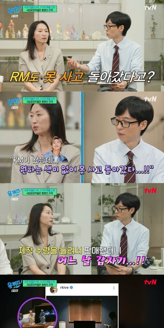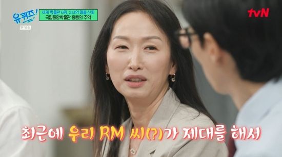 23일 방송된 tvN '유 퀴즈 온 더 블럭'(이하 '유퀴즈')에서는 국립중앙박물관 상품기획팀 김미경 팀장이 알엠을 언급한 장면이 전파를 탔다.