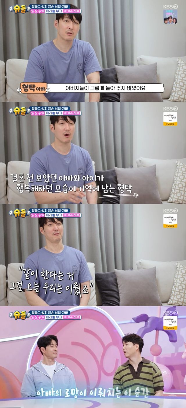 이날 아들 하루와 함께 쇼핑몰에 방문한 심형탁은 뽑기 기계 앞으로 향했다. 심형탁은 "저희 나이대에는 아버지들이 그렇게 놀아주지 않았다. 아버지에 대한 사랑 같은 게 그렇게 크지 않다. 그래서 아이한테 제가 못 받았던 사랑을 좀 더 주고 싶다는 생각이 있었다"라고 털어놨다.