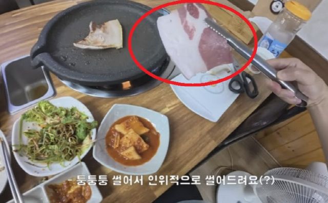 해당 영상에서 유튜버는 한 고깃집에서 1인분(120g)에 1만 5000원인 삼겹살을 주문했고, 절반 이상이 비계인 고기를 제공했다. 이를 지적한 유튜버에 식당 측은 “육지 고기처럼 각을 잡아서 파는 게 아니라 퉁퉁퉁 썰어 드린다. 처음엔 거부하시지만 구워 드시면 맛있다”고 했다.