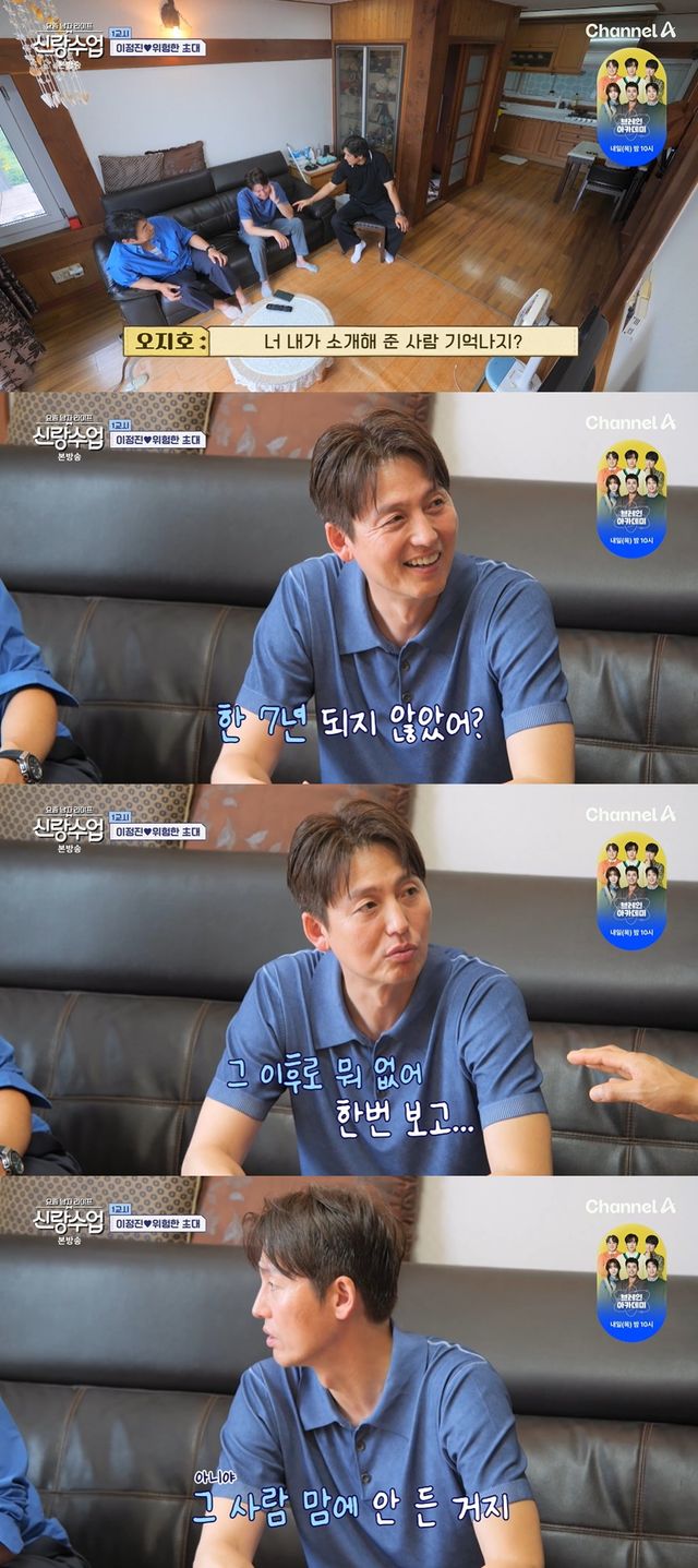 이날 오지호는 이정진에게 "너 예전에 내가 소개해 준 사람 기억하지?"라며 화두를 던졌다. 이정진은 "한 7년 되지 않았나"라고 말했고, 오지호는 "그 친구가 너무 괜찮은 거다. 그래서 '내 주변에 장가 못 가고 나이 든 배우가 한 있는데, 연락 가면 잘해 봐라' 하고 소개해 줬다. 그 뒤로 어떻게 됐냐. 그 뒤로 안물어봤다"라고 물었다.