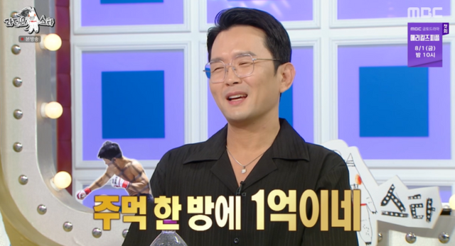 그는 “격투기에서 진짜 멋있는 건 딱 때려서 넘어지면 가만히 폼을 잡아야 멋있는 건데, 밴쯔 기절을 했는데 갑자기 눈이 떠지고 저를 보더라. 일어나면 또 싸워야 하니까 일어나지 말라고 달려가서 더 때렸다. 빨리 방망이 두드리듯 해서 좀 멋있지 않았다”고 말했다.