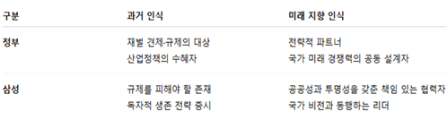 삼성과 정부의 관계는 길항의 역사라고 봐도 무방할 것이다. 때로는 극적으로 가까웠다가, 돌연 긴장관계로 돌변하곤 했다. 그러나 시대는 변해 글로벌 기술패권경쟁시대에 이제는 정부와 기업이 협력하지 않으면 국가의 경제안보가 유지될 수 없다. 기업 전문가들이 제안하고 있는 새 시대의 협력 모델과 비전의 5개 핵심 포인트: