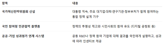 첫째, 정책의 예측 가능성과 일관성을 높여야 한다. 매 정권마다 산업정책이 오락가락하면 민간은 장기 투자를 회피하게 된다. 둘째, 민관 전략협의체를 제도화해야 한다. 삼성전자 같은 글로벌 기술기업은 세계 산업 트렌드를 가장 먼저 체감하는 센서이다. 이를 정책 설계에 반영할 수 있는 통로가 필요하다. 셋째, 지원이 있으면 성과도 투명하게 공유해야 한다. 국민의 신뢰를 얻기 위해서는 민관 협력의 과정과 결과 모두가 공개돼야 한다.
