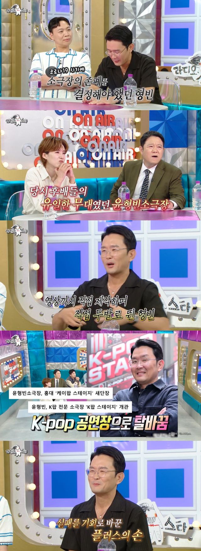윤형빈은 "VR 카페를 하다가 코로나19로 폐업했다. 밀키트도 잘되지 않았다. 가장 기억에 남은게 윤형빈 소극장이라고 공연장을 15년 정도 운영하다가 문을 닫았다. 코로나19가 직격이었다"라고 털어놨다.