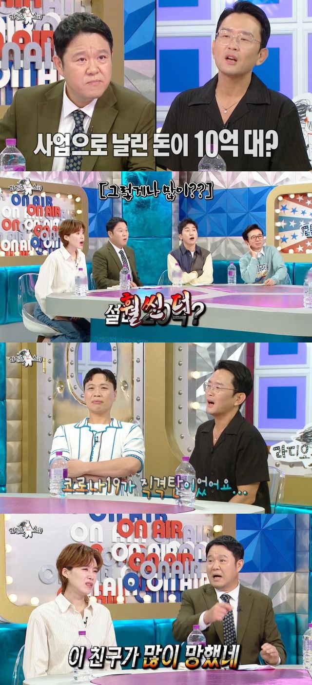 이날 윤형빈은 수많은 사업에 실패했다며 "어릴 때부터 사업을 많이 했다. 꽤 많이 날렸다. 20억 대 훨씬 이상이다"라고 밝혀 모두를 놀라게 했다.