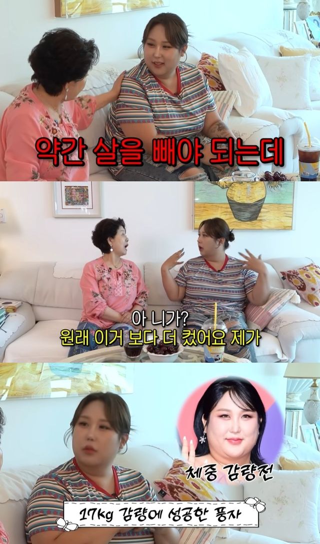 최근 다이어트에 성공한 풍자는 "원래 이거보다 더 컸다. 지금은 16~17kg 뺀 거다. 여기서 더 빼야 한다"고 밝혔다.