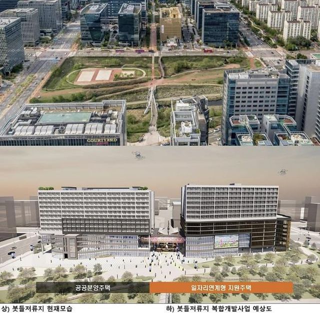 ‘판교 봇들저류지 복합개발사업’은 분당구 삼평동 667번지 일대 봇들저류지의 유수지 기능은 유지하면서 상부 공간을 복합개발해, 주택 공급이 부족한 판교테크노밸리에 청년 근로자를 위한 주거시설을 공급하고, 지역경제 활성화 및 개발이익의 지역사회 환원을 도모하는 사업이다. 총 646세대 규모로, 일자리연계형 지원주택 304세대, 청년 및 신혼부부 대상 공공분양주택 342세대, 상가 및 시민 편의시설 등이 포함되며, 입주는 2031년으로 예정돼 있다.