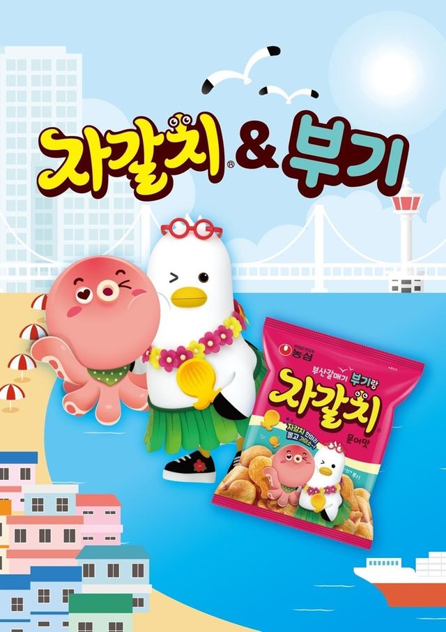 '농심 자갈치x부기' 과자는 부산의 랜드마크인 자갈치시장을 모티브로 한 국민 과자 '농심 자갈치'에 부산시 공식 캐릭터 '부기'와 사투리 문구를 더한 한정판 패키지로 구성됐다.