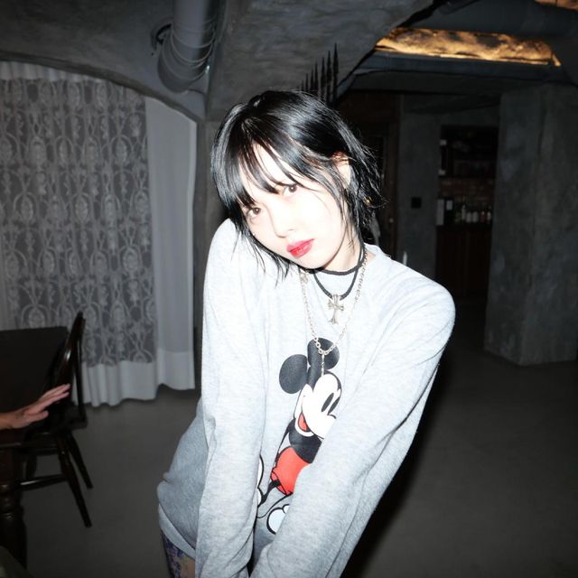 공개된 사진 속 현아는 회색 미키마우스 티셔츠에 블랙 숏팬츠, 그리고 버클 디테일이 돋보이는 롱부츠를 매치해 과감하면서도 개성 있는 스타일을 선보였다. 특히 젖은 듯한 헤어스타일과 붉은 립 메이크업이 어우러지며 독보적인 분위기를 자아냈다.