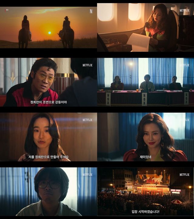 함께 공개된 티저 예고편은 영화 ‘애마부인’을 둘러싼 네 명의 인물들의 이야기와 함께 그 시절 화려했던 충무로의 이면을 담아내 이목을 집중시킨다. 1980년대 최고의 탑스타라고 불린 ‘희란’은 젖가슴이라는 단어로 도배된, 노출 위주의 시나리오에 분노하고 ‘구중호’(진선규)에게 당당하게 보이콧을 선언하지만, 영화사 계약으로 인해 ‘애마부인’에 출연해야만 한다. 이에 영화사 대표 ‘구중호’는 ‘희란’을 조연 ‘에리카’로 강등시키고, 새로운 ‘애마’를 찾기 위해 연출을 맡은 신인 감독 ‘곽인우’(조현철)와 함께 대대적인 오디션을 개최, 당돌한 매력의 ‘주애’를 발굴한다. “저를 정희란으로 만들어주세요”라는 ‘주애’의 말에 “재미있네” 라고 말하는 ‘희란’의 모습은 두 사람 사이의 미묘한 신경전을 예고하며 이들이 어떤 관계를 이어갈지 궁금증을 자극한다. 여기에 항상 화려한 스포트라이트를 받았던 ‘희란’과 카메라 앞에 서 본 적 없는 신인 배우 ‘주애’의 갈등, 제작사 대표 ‘중호’와 감독 ‘인우’의 대립 등 영화가 완성되기까지의 과정이 결코 순탄치 않음을 예고한다. 뿐만 아니라, 시대적 배경을 고스란히 반영한 여러 공간들과 다채로운 의상, 감각적인 스타일링까지 구현한 ‘애마’는 그때 그 시절, 충무로의 중심으로 전 세계 시청자들을 끌어들일 전망이다.