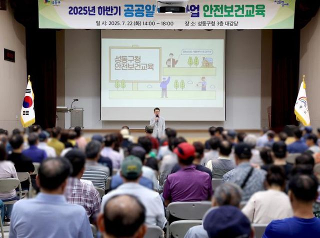 [파이낸셜경제=김영란 기자] 서울 성동구가 지난 22일 성동구청 3층 대강당에서 '2025년 하반기 공공일자리사업' 참여자를 대상으로 산업재해 예방과 건강한 근무환경 조성을 위해 집합 안전보건교육을 실시했다고 밝혔다.