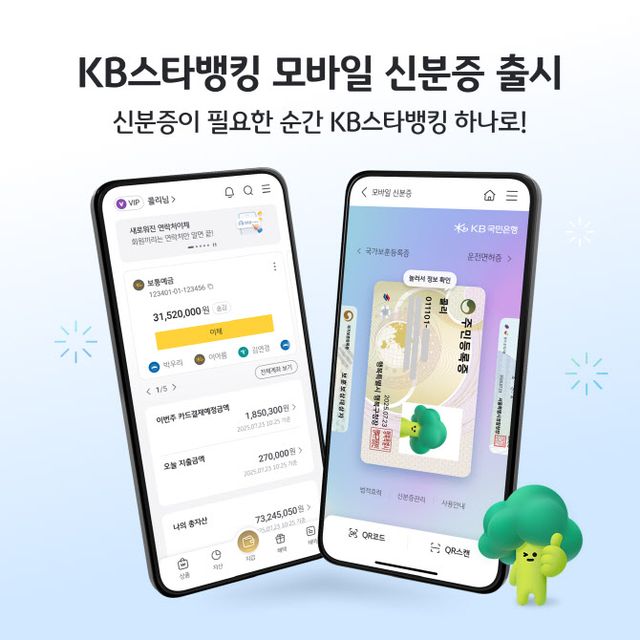 기존에는 ‘대한민국 모바일 신분증’ 앱과 ‘삼성 월렛’에서만 이용할 수 있었던 모바일 신분증을, 앞으로는 KB스타뱅킹에서도 발급받을 수 있게 됐다. 먼저 One UI 6.1 이상이 적용된 삼성 갤럭시 단말에서 사용 가능하며, 향후 아이폰(iOS) 기기까지 확대할 계획이다. 발급 가능한 신분증은 △주민등록증 △운전면허증 △국가보훈증 △외국인등록증이다.