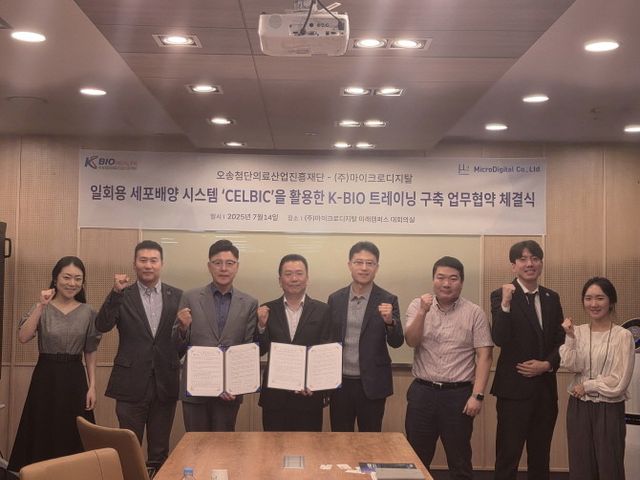 이번 협약을 통해 마이크로디지탈이 국내 최초로 개발한 일회용 세포배양 시스템 'CELBIC'이 K-BIO 트레이닝센터에 공급돼 향후 실습 중심의 바이오 교육에 활용될 예정이다.