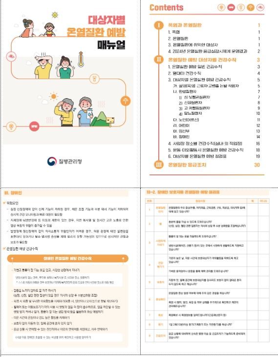 이에, 국민 건강 피해 예방 홍보 대상 범위 확대 방안으로 장애인 대상 온열질환 예방 건강수칙을 추가하여 '대상자별 온열질환 예방 매뉴얼'을 개정했다.