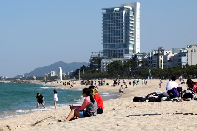 2019년 5월 23일 강릉시 경포해수욕장에서 나들이를 나온 시민들이 시원한 바닷바람을 맞으며 더위를 식히고 있다. / 뉴스1
