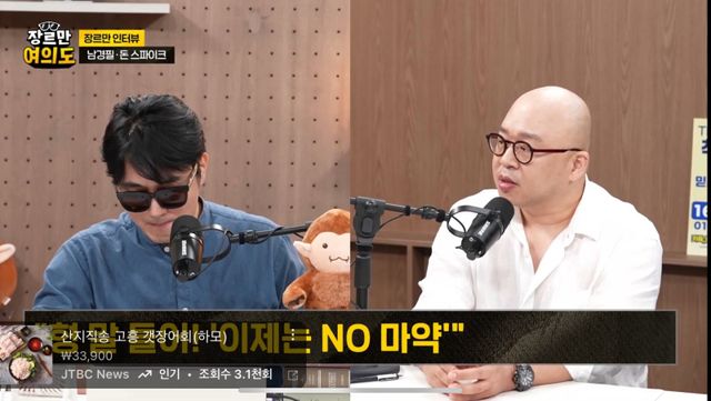 24일 생방송 된 JTBC의 유튜브 정치, 시사 토크쇼 ‘장르만 여의도’에는 돈스파이크가 출연했다. 이날 마약 예방 및 치유 단체 ‘은구’의 대표인 남경필 전 경기도지사도 함께 나왔다.