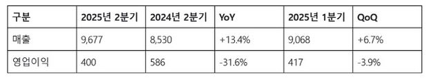 매출은 자원 및 인프라 개발 수요에 따른 신흥 시장의 성장과 중국 시장의 회복세로 전년 동기 대비 13.4% 증가했으나, 영업이익은 지난 4월 공시된 중국 사업 재편 등 일회성 비용 213억원이 반영돼 31.6% 감소했다.
