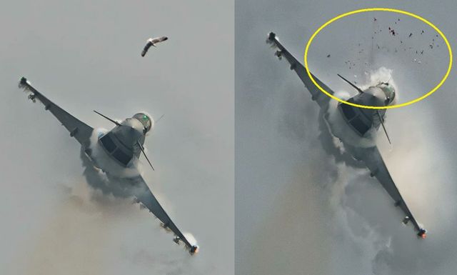 스페인 에어쇼에서 시범비행을 하던 전투기가 갈매기와 충돌하면서 조종석 유리가 산산조각 나는 사고가 발생했다. 다행히 조종사는 다치지 않았으며, 전투기는 무사히 착륙했다.