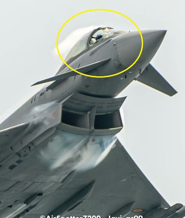 갈매기와 부딪혀 조종석 유리창이 파괴된 스페인 공군 소속 유로파이터 타이푼(Eurofighter typhoon) 전투기. 하이베르 알론소 데 메디아 살게로 SNS
