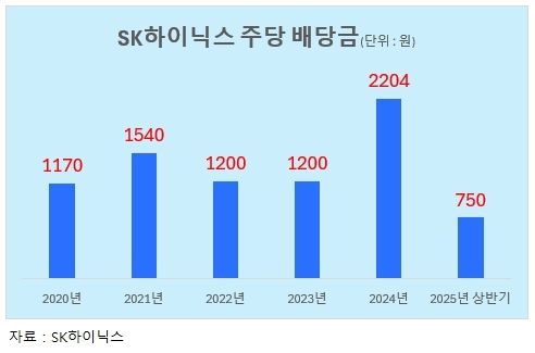SK하이닉스는 누적 잉여현금흐름(FCF)의 50%를 주주환원의 재원으로 사용한다. 주당 연간 고정배당금은 1500원으로, 이를 4개 분기 균등하게 나눠 지급하고 있다. 추가 배당금은 재무 건전성을 유지하는 범위 내에서 검토한다는 방침이다.