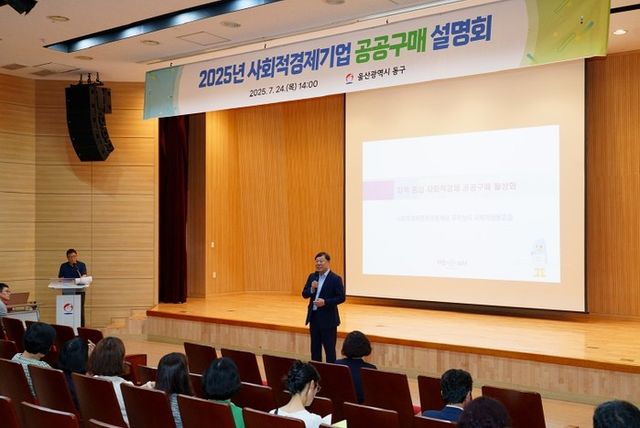[파이낸셜경제=김예빈 기자] 울산 동구는 7월 24일 오후 2시, 울산 동구청 5층 중강당에서 ‘2025년 사회적경제 공공구매 설명회’를 개최했다.