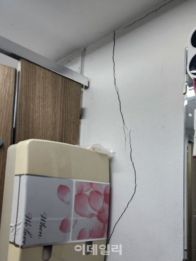 고모(41)씨는 “물이 새고 바닥이 뒤틀리고 벽이 깨지는 상황이었음에도 공사를 진행했다”면서 “민원을 넣고 했는데도 돌아오는 답변이 다 안전하다는 것이었다”고 했다. 이어 “땅을 팔 때까지 계속해서 참고 기다렸는데 땅을 다 파봤더니 저 상황이 벌어진 것”이라고 했다. 인근 식당 사장인 B씨도 “바닥이 뒤틀려서 냉장고 문이 잘 맞지 않더라”고 말했다.