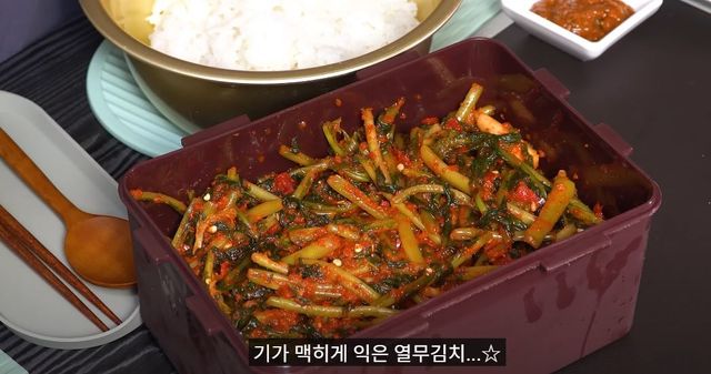 잘 익은 열무김치가 들어가 새콤달콤하면서도 알싸한 맛이 특징이며, 고추장과 참기름을 적당히 넣어 밥과 잘 비벼 먹으면 여름철 무기력해진 몸에 활력을 불어넣는다. 간단하면서도 다양한 식감을 즐길 수 있어 누구나 부담 없이 즐길 수 있다.
