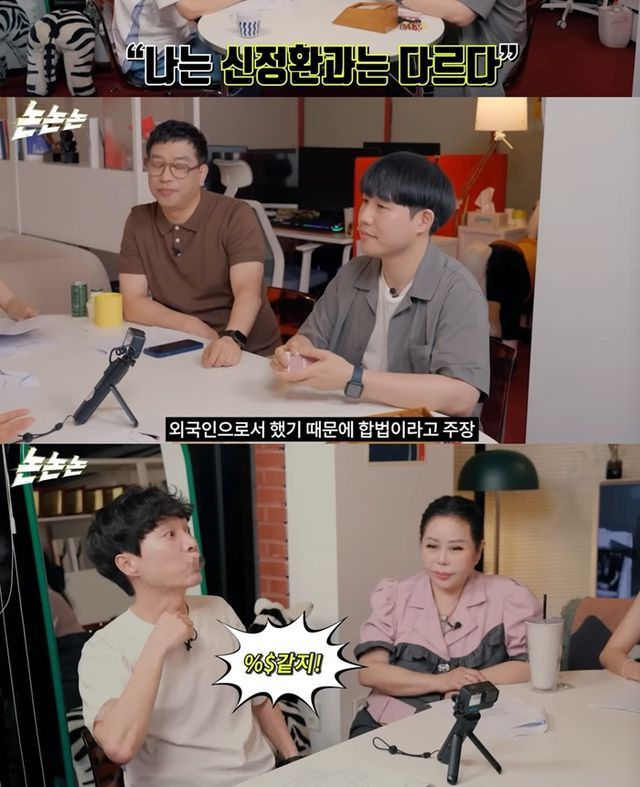 신정환은 "본인은 대놓고 했다고, 슈는 국적이 일본이라 외국인으로 해서 합법이라고 하더라"라고 이야기했다.