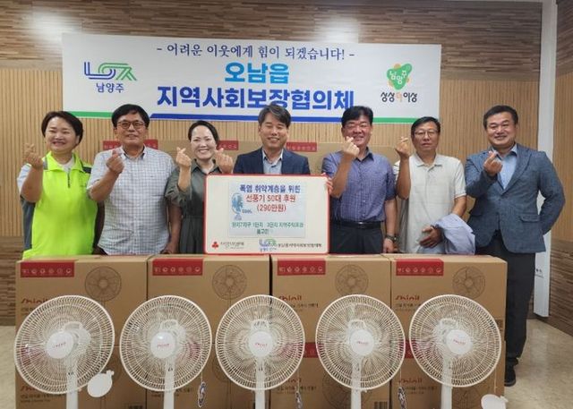 기부받은 선풍기는 대상자 선정 후 오남읍 지역사회보장협의체 위원들이 직접 가정을 방문해 전달할 예정이며, 사용법 안내와 함께 폭염 시 유의사항도 함께 안내할 계획이다.
