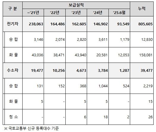 | ▲ 전기‧수소 상용차 보급 현황 (’25.6월 기준) |