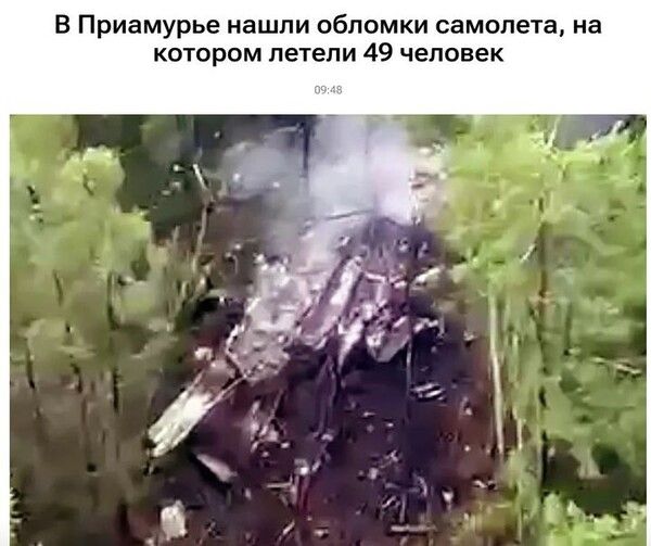 뉴시스 보도에 따르면, 인테르팍스, 리아노보스티 통신 등에 따르면 이날 아무르주 틴타공항으로 향하던 안가라항공의 '안토노프(An)-24' 여객기가 관제 지점 인근에서 통신이 두절된 뒤 추락한 채로 발견됐다.