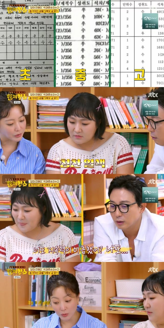이어 빈 교실을 찾은 이들은 생활기록부를 공개했다. 이수지는 '수'와 '우'밖에 없는 우수한 성적을 공개해 감탄을 자아냈다. 또한 '성실하고 차분하고 언행이 바르다'라는 이야기가 적혀있어 시선을 사로잡았다.