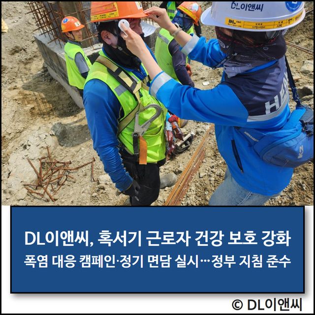 DL이앤씨(375500)는 지속되는 폭염 속에서 혹서기 근로자 보호를 위한 건강관리와 작업시간 조정에 나섰다. 특히 정부의 온열질환 예방 방안 개정에 따라 현장 관리 체계를 강화했다.