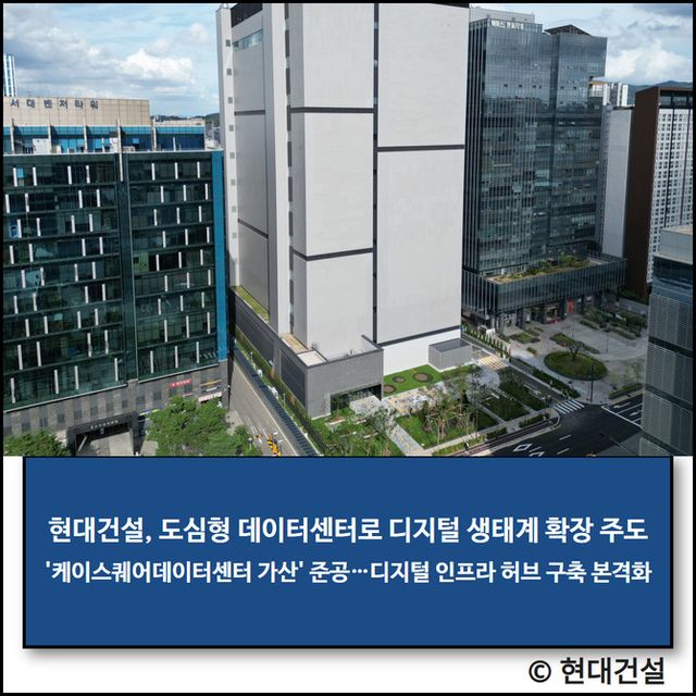 현대건설(000720)은 서울 금천구 가산동에 '케이스퀘어데이터센터 가산'을 성공적으로 준공했다. 해당 시설은 지하 3층~지상 11층, 연면적 4만1214㎡ 규모다.