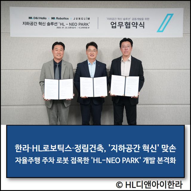 HL디앤아이한라는 HL로보틱스, 정림건축과 함께 지하공간 혁신 솔루션 개발을 위한 양해 각서(MOU)를 체결했다. 이는 '지하공간 혁신 솔루션(HL-NEO PARK)' 개발에 협력한다는 내용을 담고 있다.