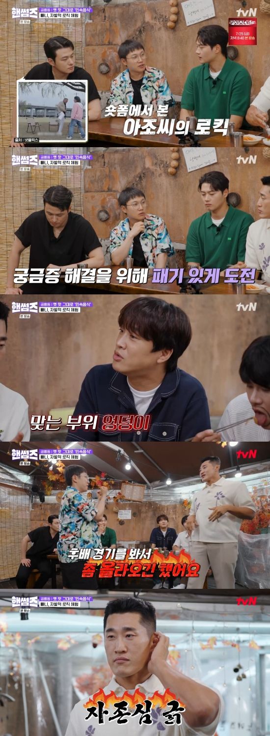 빠니보틀은 "저는 부추가 당긴다. 고기보다"라며 말했고, 김동현은 "후배 경기를 봐서 좀 올라오긴 했다. 10%만 더 (세게)"라며