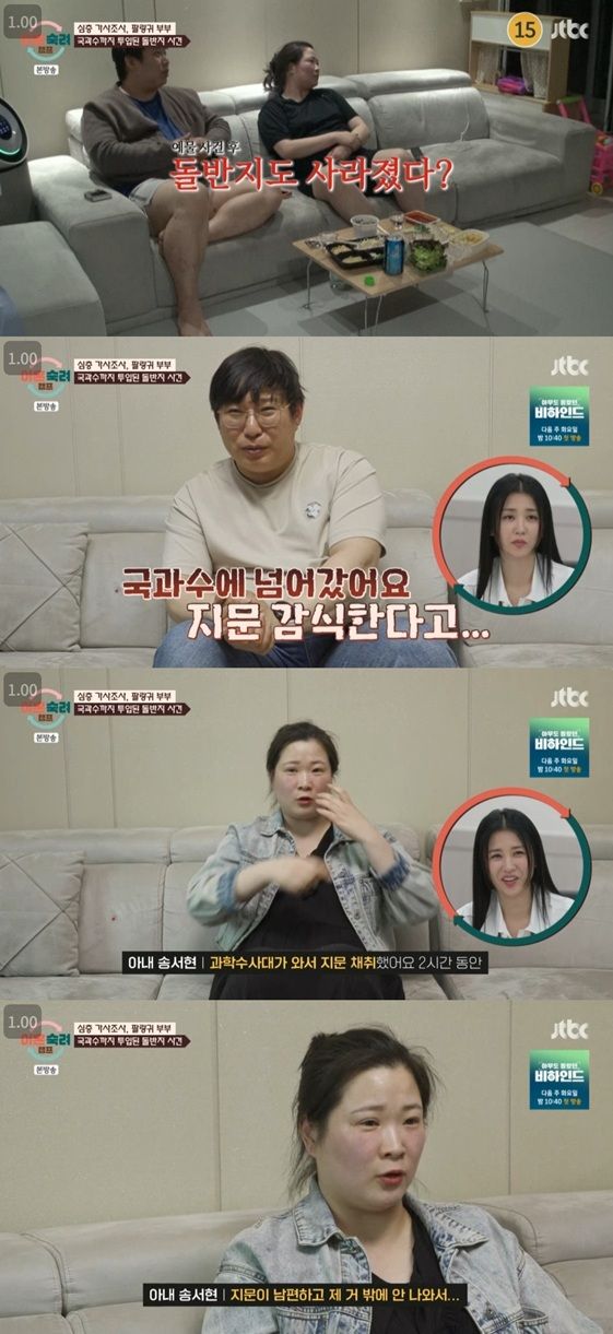 남편은 반지의 가치가 약 400만 원이라며 "돌반지 사건은 사실 국과수에 넘어갔다. 지문 감식한다고"라며 미궁에 빠진 돌반지의 행방을 언급했고, 아내는 "과학 수사대가 와서 지문 채취했다. 2시간 동안. 근데 결국 수사가 종결됐다. 지문이 남편과 제 거만 나왔다"고 밝혔다.
