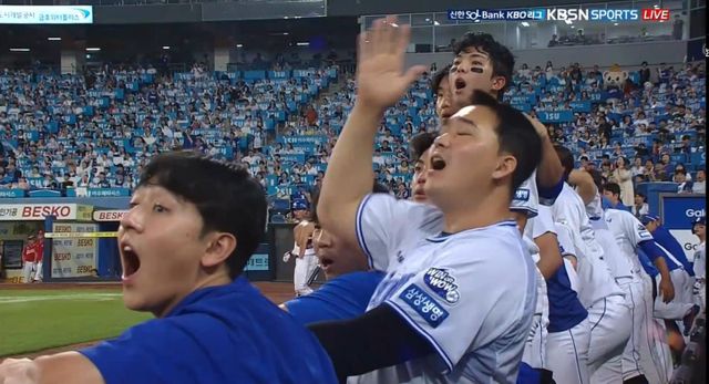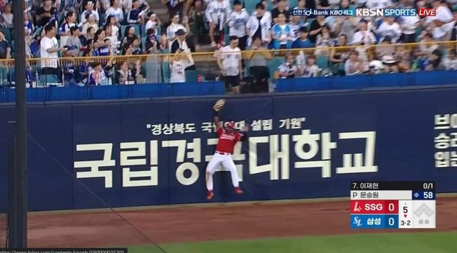 이어 0-0으로 맞선 5회 말에는 좌익수 기예르모 에레디아가 '하이라이트 필름'을 만들었다. 쭉쭉 뻗어나간 삼성 이재현의 빨랫줄 같은 타구를 펜스에 부딪히며 포구한 것. 더그아웃에 있던 삼성 선수들이 깜짝 놀란 장면이 중계 카메라에 잡힐 정도였다. 두 번의 수비로 '무실점'을 이어간 SSG는 6회부터 득점에 성공하며 분위기를 전환했다.
