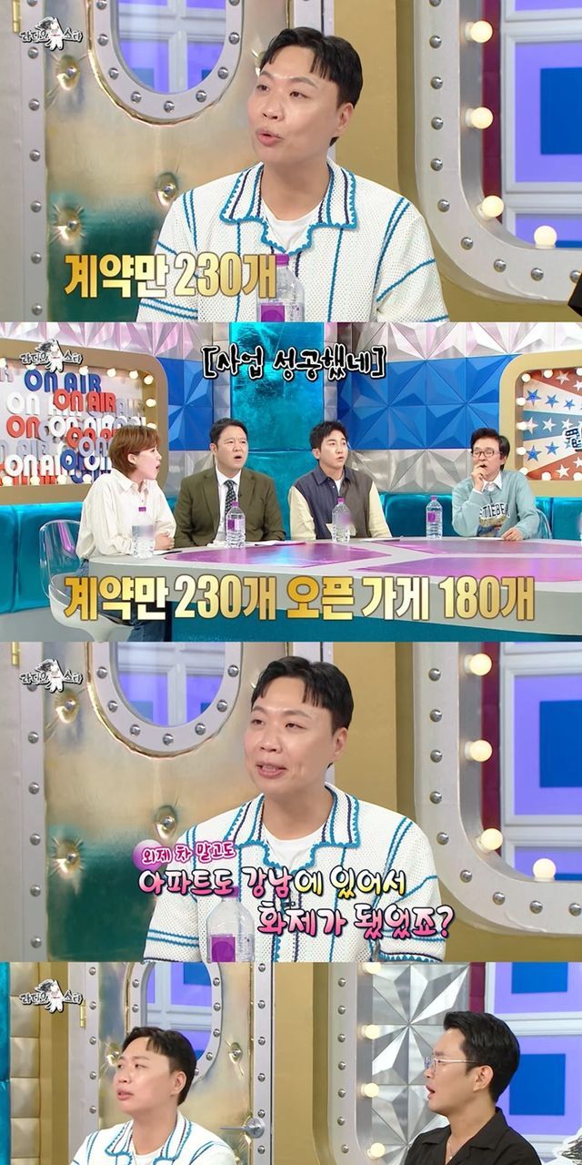 "계약이 230개고 오픈한 가게가 180개다"라며 어마어마한 사업 규모를 이야기한 이상준에 김구라는 "사실 외제차도 끌고 그런걸로 화제가 됐다"며 그의 재력을 짚었다.