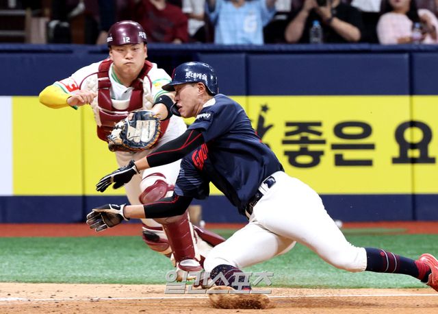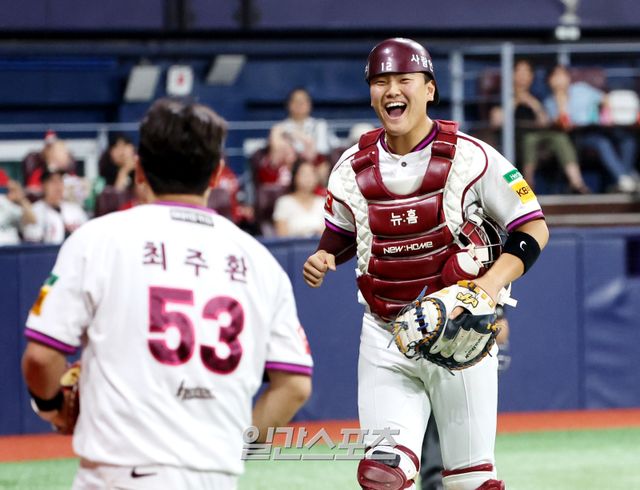 결정적 차이는 도루 저지 능력이다. 김건희는 올 시즌 총 16번 도루 저지에 성공했다. 리그 1위다. 저지율도 350이닝 이상 소화한 리그 포수 중 두 번째로 높은 32%였다.