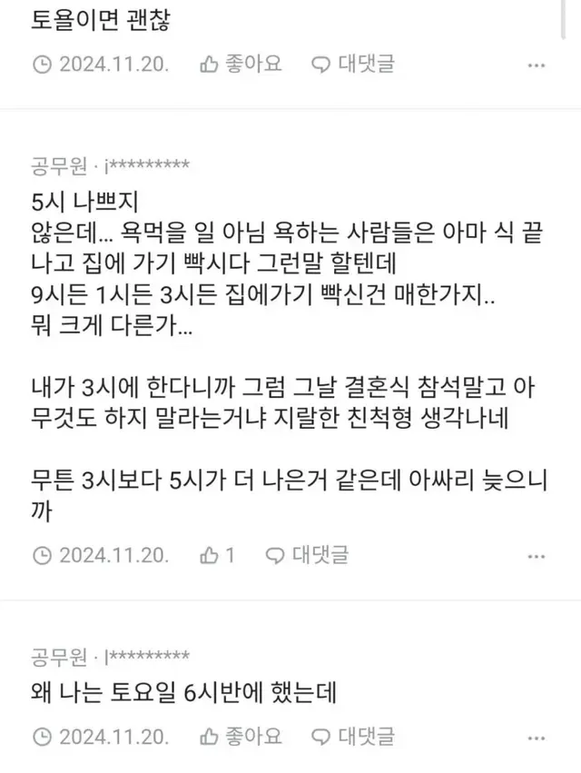 토요일 오후 5시 결혼식,,