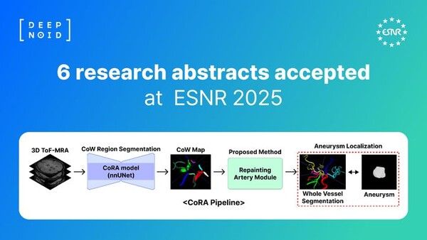 뉴시스 보도에 따르면, 의료AI 전문기업 딥노이드는 뇌혈관 및 뇌실질 질환 AI 진단 기술 관련 연구 초록 6편이 'ESNR 2025(European Society of Neuroradiology 2025)'에서 채택됐다고 25일 밝혔다.