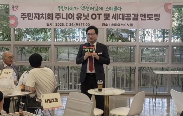 [파이낸셜경제=김영란 기자] 동작구가 지난 24일 관내 주민자치회 젊은 위원들로 구성된 ‘주니어 유닛’의 오리엔테이션을 개최해, 시니어 위원들과 ‘세대공감 멘토링’ 시간을 가졌다고 밝혔다.