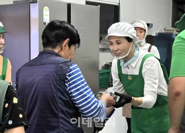 이후 주민·자원봉사자들과 함께 군 장병 300여명의 점심 식사 준비를 거들고 식사 이후에는 직접 설거지를 하며 봉사활동을 마무리했다.